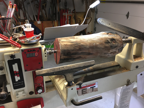 The starting process to shape this log requires that I see most of the final product before I start turning.